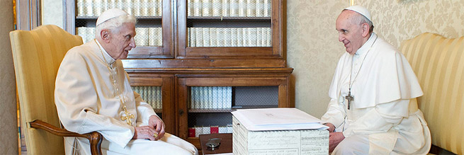 Los dos últimos ocupantes de la Cátedra de San Pedro rezaron juntos