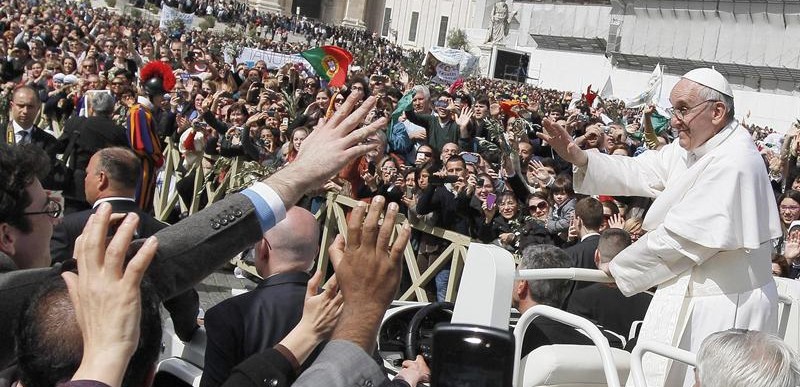 El papa Francisco ha recordado en su primera audiencia general de este miércoles en la Plaza de San Pedro las palabras que pronunció en las congregaciones generales previas al cónclave ante el resto de cardenales y que fueron reveladas el pasado sábado por el arzobispo de La Habana, Jaime Ortega: "Salir de sí mismo para ir al encuentro de los demás, a la periferia de la existencia".