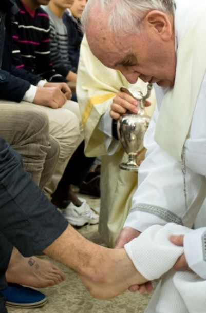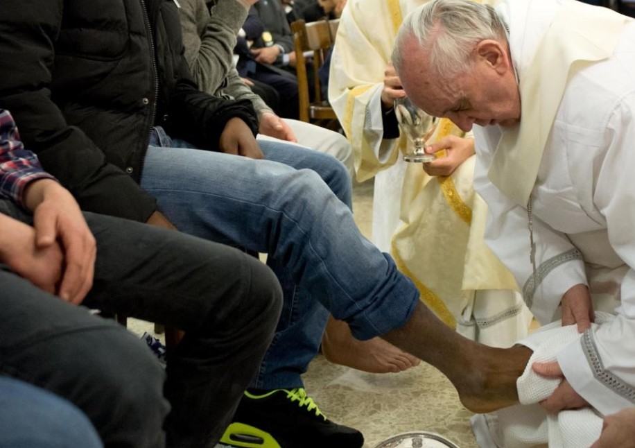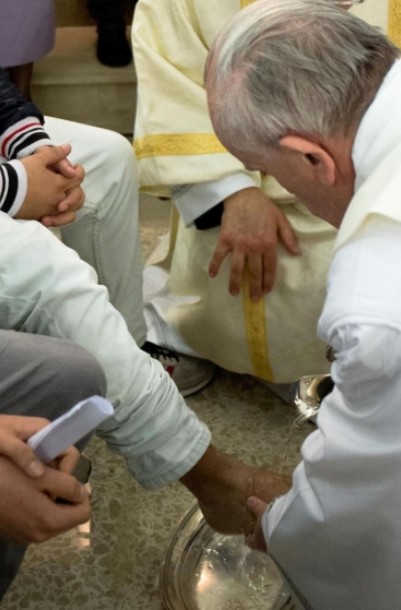 Francisco lava los pies a doce adolescentes de un centro de menores el Jueves Santo