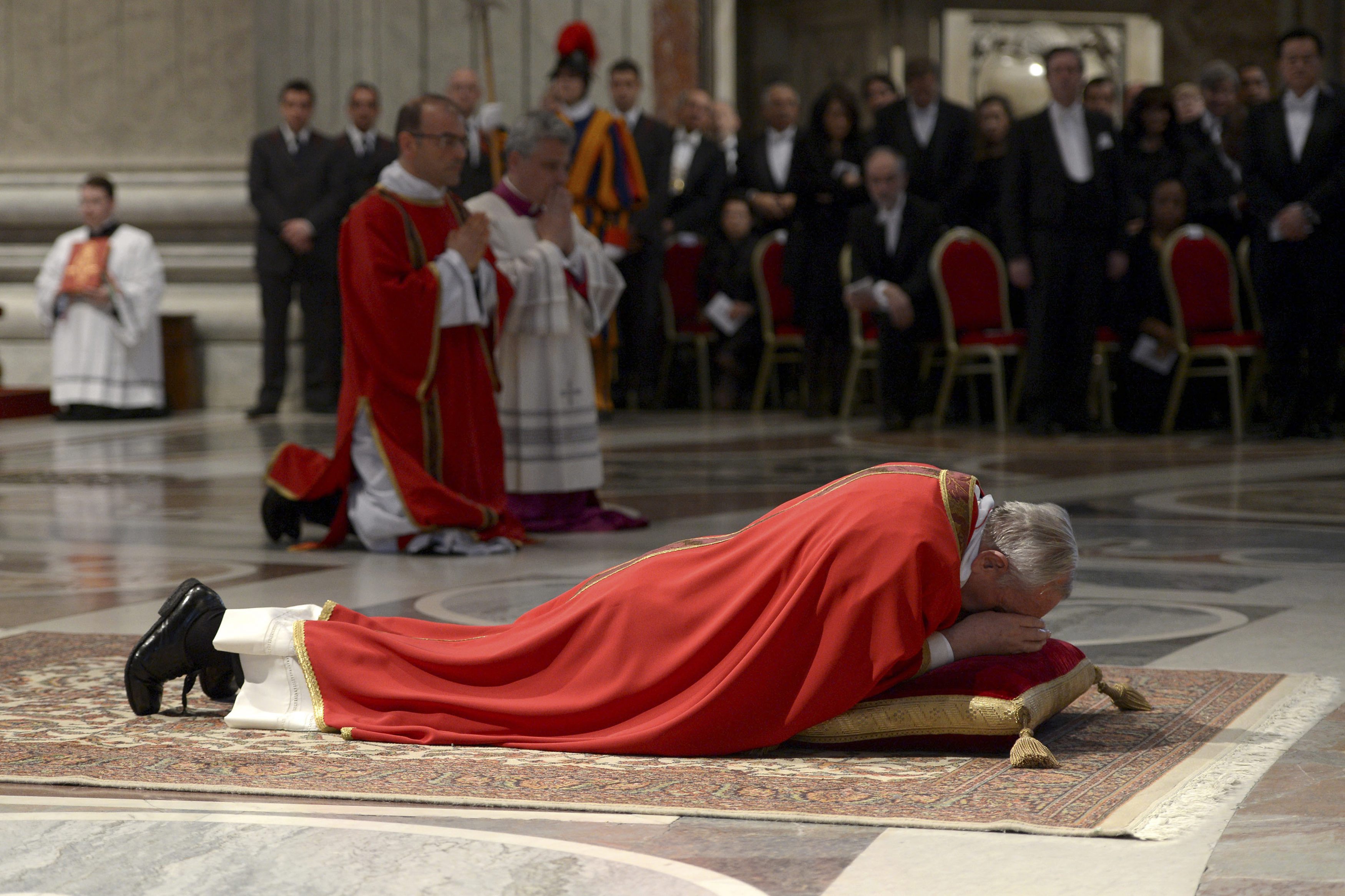 El Papa reza tumbado en la basílica de San Pedro en la Pasión del Viernes Santo