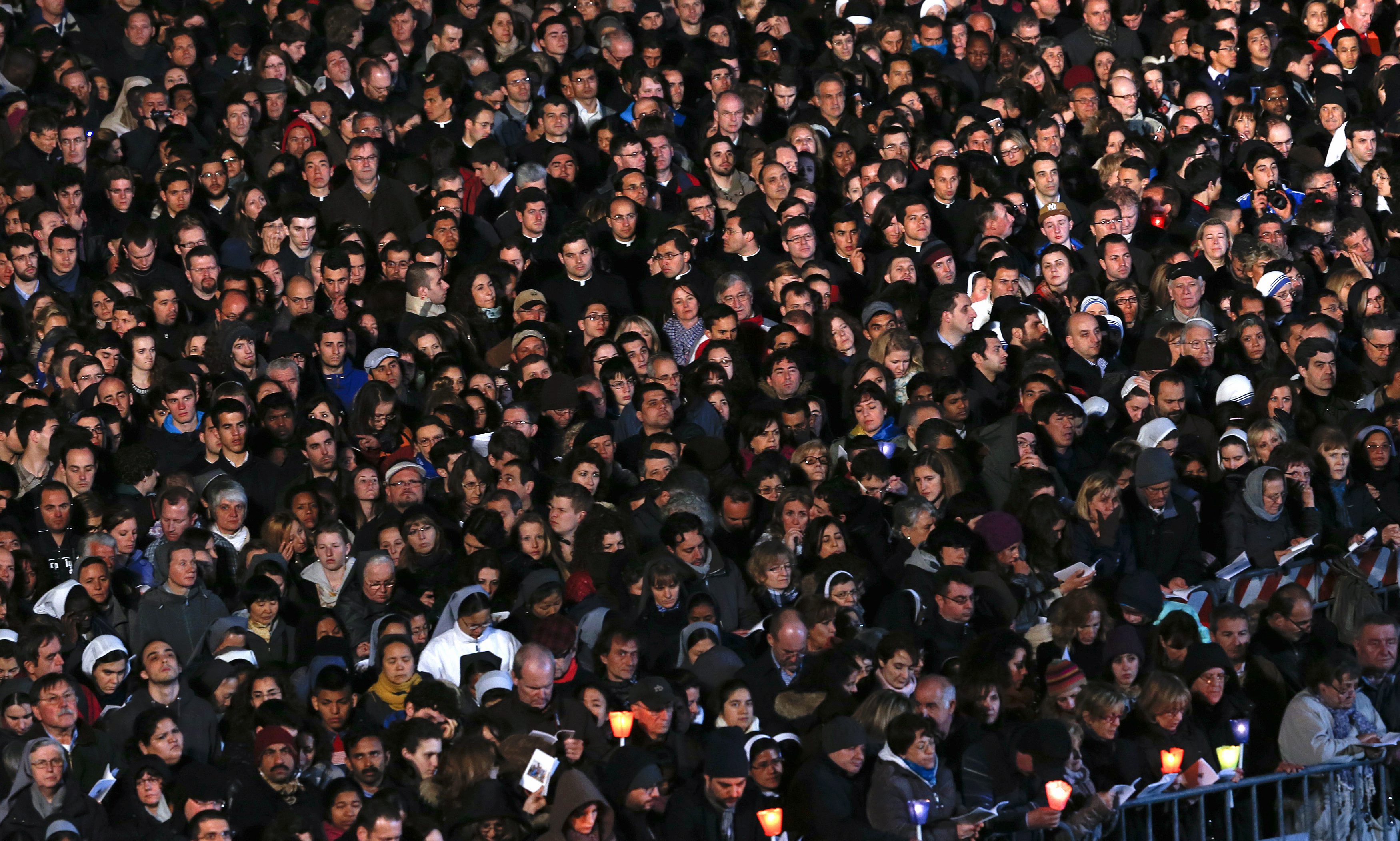Una gran multitud siguió el Vía Crucis en la Plaza de San Pedro.