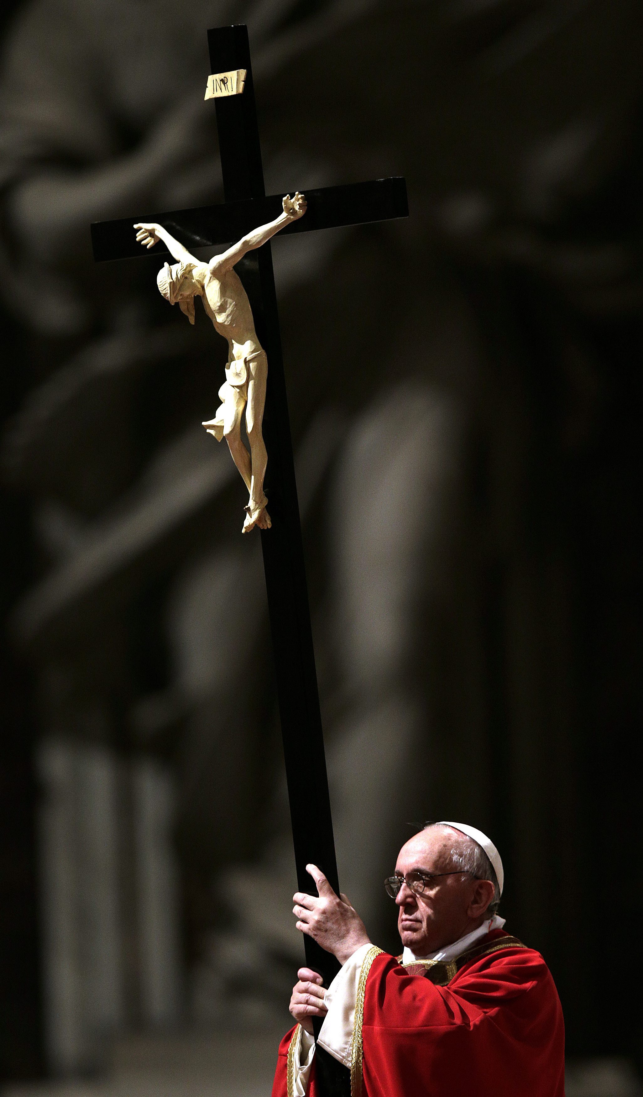 Francisco lleva la cruz durante de Cristo este Viernes Santo.