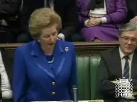 Irónicamente, las últimas palabras de Thatcher en la Cámara de los Comunes las dedicó a uno de los asuntos más polémicos de su mandato: la Guerra de las Malvinas. "Dos veces en mi tiempo como primer ministro hemos tenido que enviar a nuestras Fuerzas Armadas para defender a un pequeño país de una agresión despiadada", recordó. "Para aquellos que nunca han tenido que tomar este tipo de decisiones, les digo que se toman con el corazón encogido y con el conocimiento de los múltiples peligros; pero con gran orgullo por la valentía y profesionalidad de nuestras Fuerzas Armadas. Uno no siente otra cosa. Es el sentido del destino de nuestro país: los siglos de historia y la experiencia garantizan que, cuando los principios tienen que ser defendidos, cuando el bien tiene que ser mantenido y el mal tiene que ser superado, el Reino Unido tomará las armas. Y es así porque, nosotros de este lado nunca hemos vacilado frente a las decisiones difíciles. Esta Cámara y este país pueden tener confianza en el este Gobierno", finalizó. Fue la última vez que habló ante la Cámara de los Comunes.