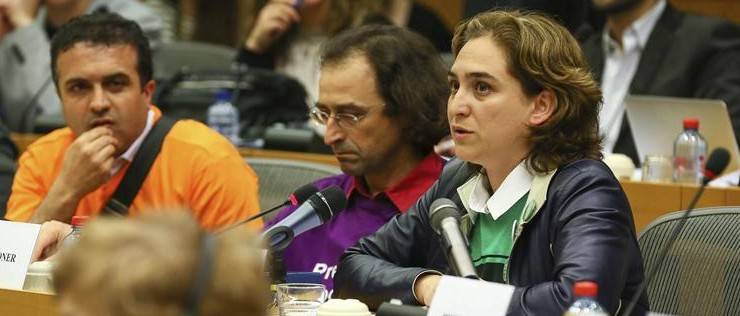 La presencia de la portavoz de la plataforma antidesahucios, Ada Colau, en Bruselas volvió a convertirse en un tenso intercambio entre el colectivo y el Partido Popular. En tono y términos igual de broncos que en España, Colau se quejó ante la Eurocámara de ser "criminalizada" y se negó a condenar el acoso sufrido por varios políticos en sus casas.