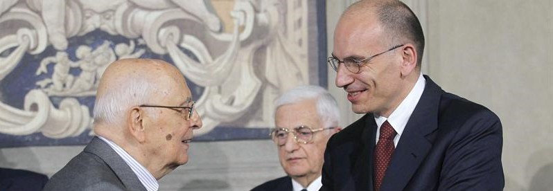 Después de la alocución de Letta, Napolitano compareció ante los medios, aseguró que se trata del único Gobierno posible para el país y defendió que se trata de un "Ejecutivo político" formado dentro del marco institucional italiano y siguiendo la "praxis" democrática, al tiempo que expresó su deseo de que haya el mayor consenso posible.