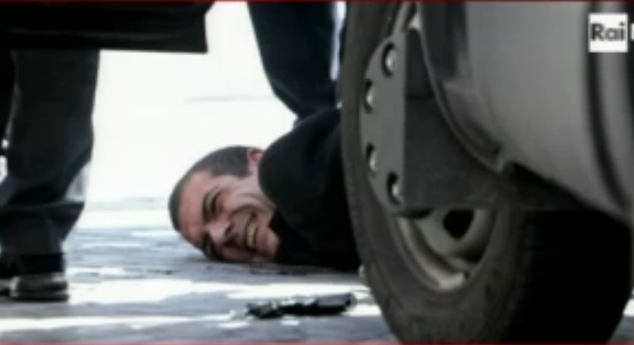 El Carabinieri herido en el cuello, en el momento en que era atendido por uno de sus compañeros