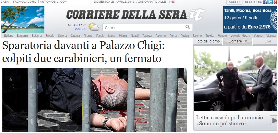 En pocos minutos, los principales periódicos italianos, como 'Il Corriere Della Sera' abrían sus ediciones digitales con la noticia