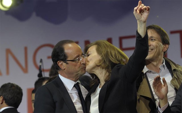 Es decir, que Hollande también utilizó su vida privada como un trampolín al Elíseo, como se han ocupado de recordarle desde los rotativos. De hecho, inauguró su puesto como octavo presidente de la V República francesa con una imagen reveladora: besando a Valérie Trierweiler en la Plaza de la Bastilla. Ella prometía que no será una primera dama "florero" y en cierto modo se confió en una presidencia sentimentalmente tranquila.
