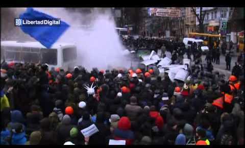 Los incidentes comenzaron al término del mitin multitudinario que la oposición celebró en el centro de Kiev, cuando varios miles de manifestantes intentaron romper el cerco policial establecido por las fuerzas antidisturbios junto a la sede gubernamental.