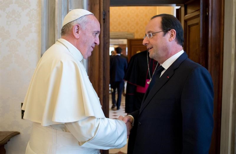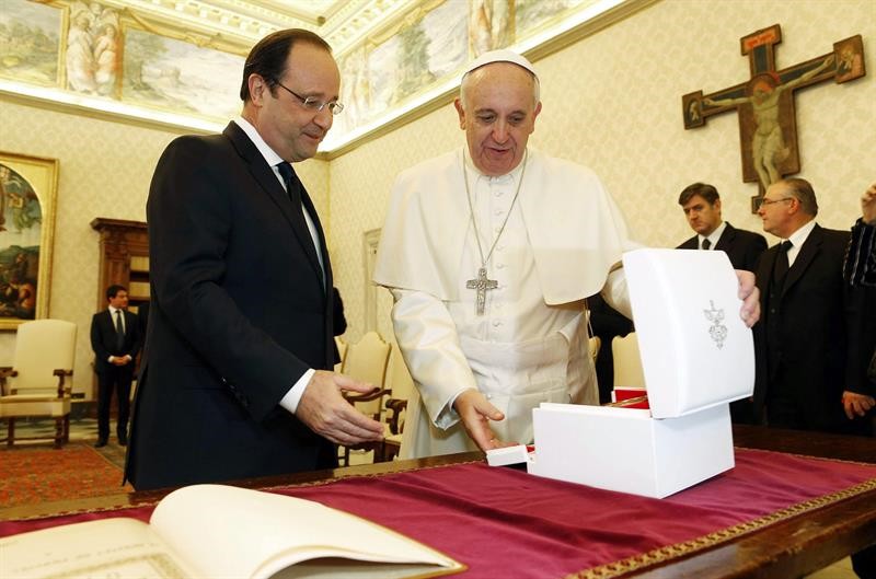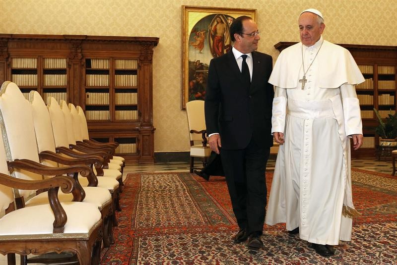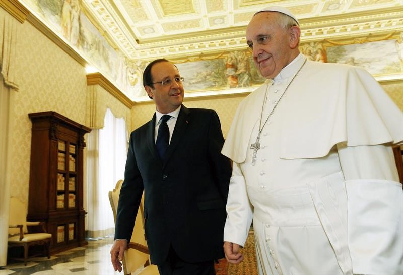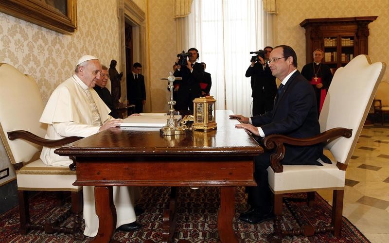 Inmerso en pleno escándalo sentimental, el presidente francés visitó este viernes al Papa Francisco en el Vaticano. No le acompañó su pareja, Valérie Trierweiler, aunque, según parece, nunca estuvo previsto que lo hiciera. (Fotos: EFE)