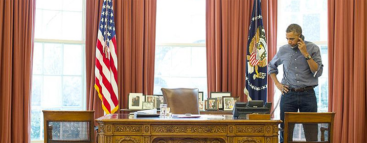 Tras una conversación telefónica de hora y media entre ambos líderes, la Casa Blanca emitió un comunicado en el que califica lo ocurrido en las últimas horas en Crimea como "una clara violación de la soberanía e integridad territorial de Ucrania por parte de Rusia".