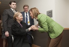 Cospedal saluda a Yulia Timoshenko, la ex primera ministra ucraniana.
