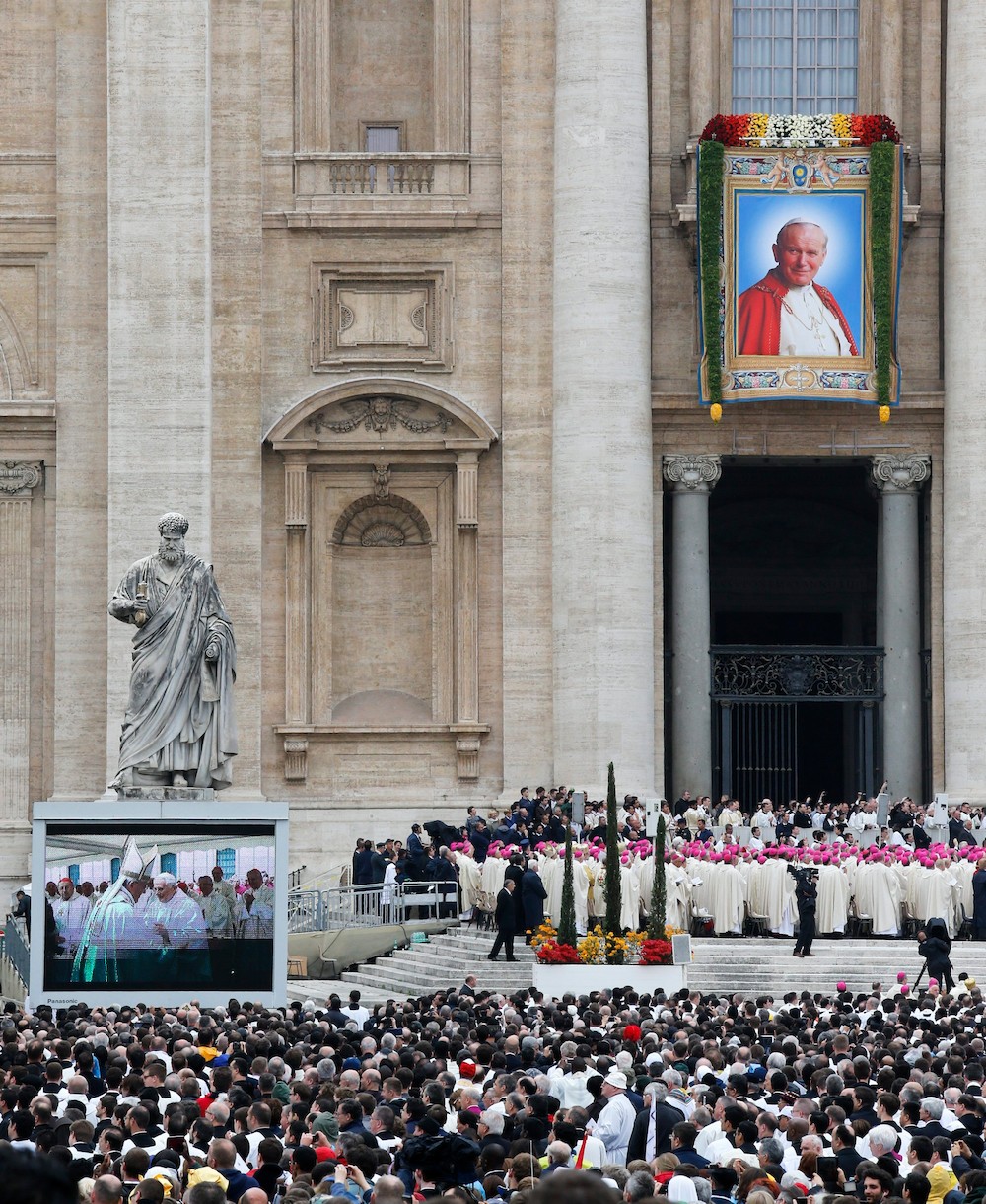 La Plaza de San Pedro del Vaticano en Roma ha acogido este 27 de abril la canonización de los papas Juan Pablo II y Juan XXIII. La ceremonia ha sido presidida por el Sumo Pontífice, el papa Francisco y ha contado también con la participación del papa emérito, Benedicto XVI.