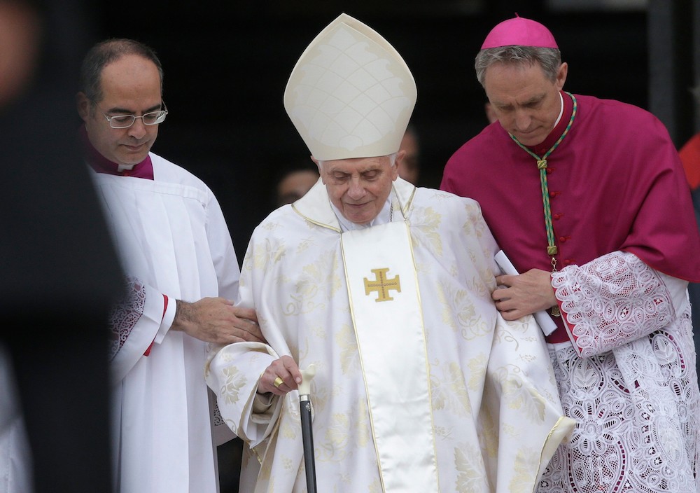 El papa emérito Benedicto XVI no quiso perderse una canonización, también muy emotiva para él. Fue aclamado por la multitud y saludado por Francisco