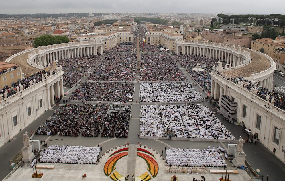 Imagen aérea de la canonización, repleta de fieles hasta donde llega la vista