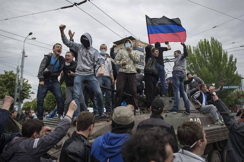 Otras fuentes precisaron que los atrincherados no eran policías, sino efectivos armados de la autoproclamada "república popular de Donetsk", que se propone celebrar el domingo un referéndum separatista.