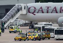 El avión, rodeado por la Policía tras aterrizar en Londres | Cordon