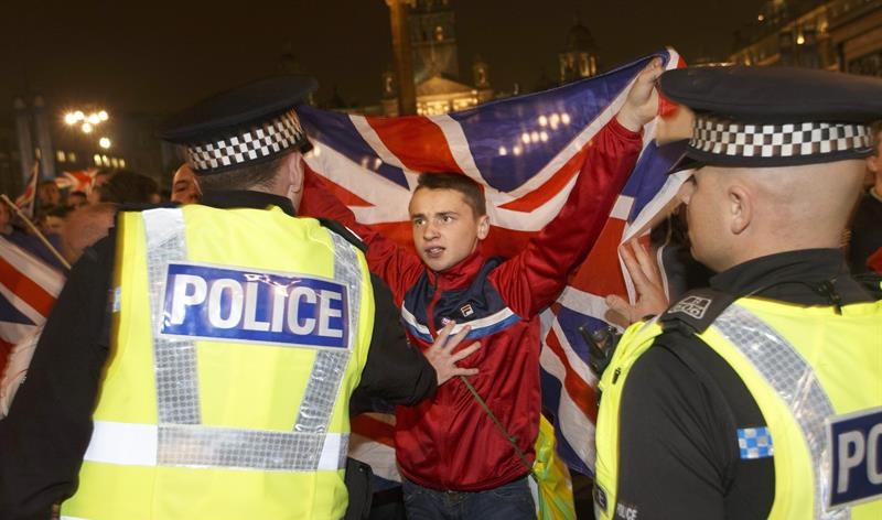 En contra de lo que aduce la teoría separatista, tras la celebración del referéndum independentista en Escocia podría estar generándose un ambiente de mayor enfrentamiento y violencia, al menos si nos atenemos a lo ocurrido en la pasad noche en Glasgow –la mayor ciudad en la que triunfó el sí- en la que unionistas e independentistas se enfrentaron violentamente la pasada noche.