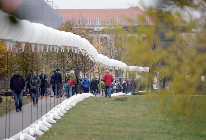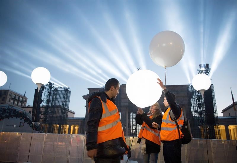 Las autoridades alemanas han cubierto de globos el recorrido por el que transcurría el Muro de Berlín