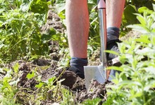 Imagen de archivo de joven cavando en su jardín | Corbis