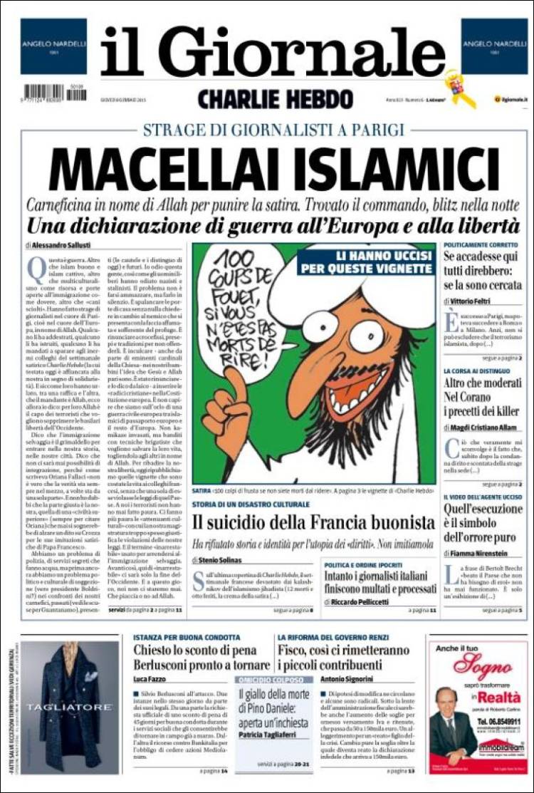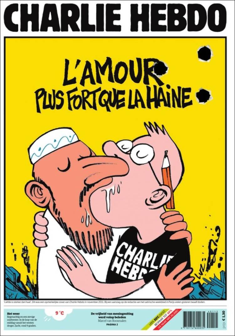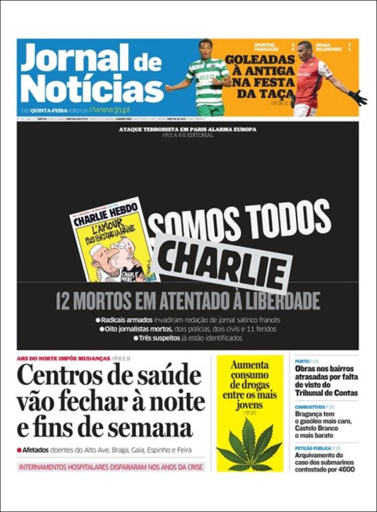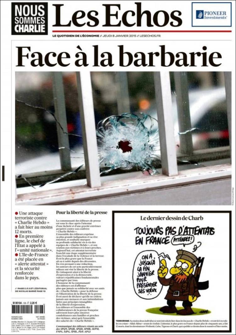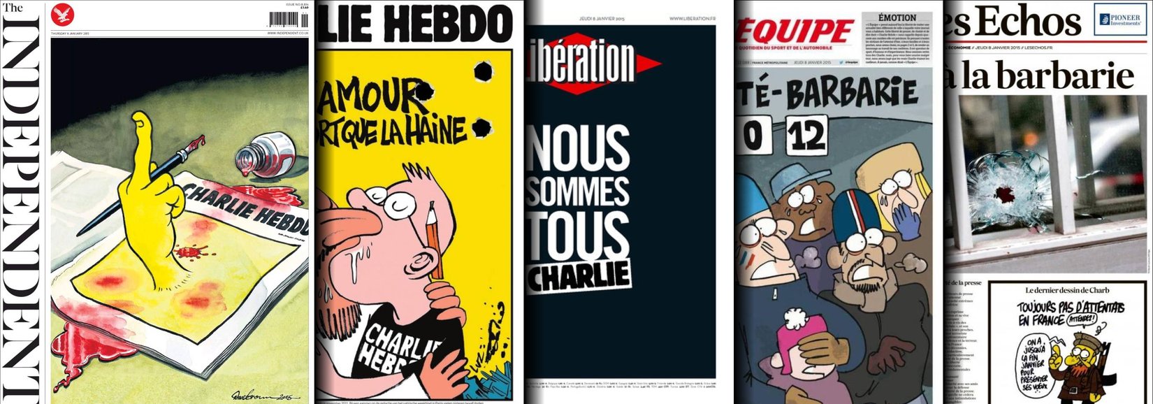 El ataque a la sede de la revista satírica francesa Charlie Hebdo, que se cobró la vida de doce personas, protagoniza las portadas de los principales diarios del mundo. Aunque algunos medios -especialmente, los estadounidenses- han optado por no publicar las caricaturas de Mahoma, otros, o bien las han publicado integralmente, o las han adaptado, o han elaborado sus propias viñetas reivindicativas. En este sentido, destacan las portadas de The Independent -Reino Unido- o NRC Next -Holanda-.