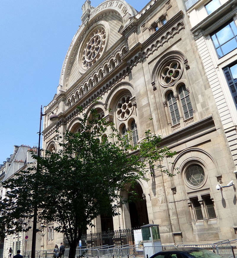 La Gran Sinagoga de París es conocida como Sinagoga de la Victoria, por situarse en la calle de la Victoria de la capital. Fue diseñada con estilo clásico, pero adornada con motivos bizantinos por Alfred-Philibert Aldrophe (1834-1895). Su construcción comenzó en 1867 y fue inaugurada en 1874. Abrió sus puertas al público un año después.
