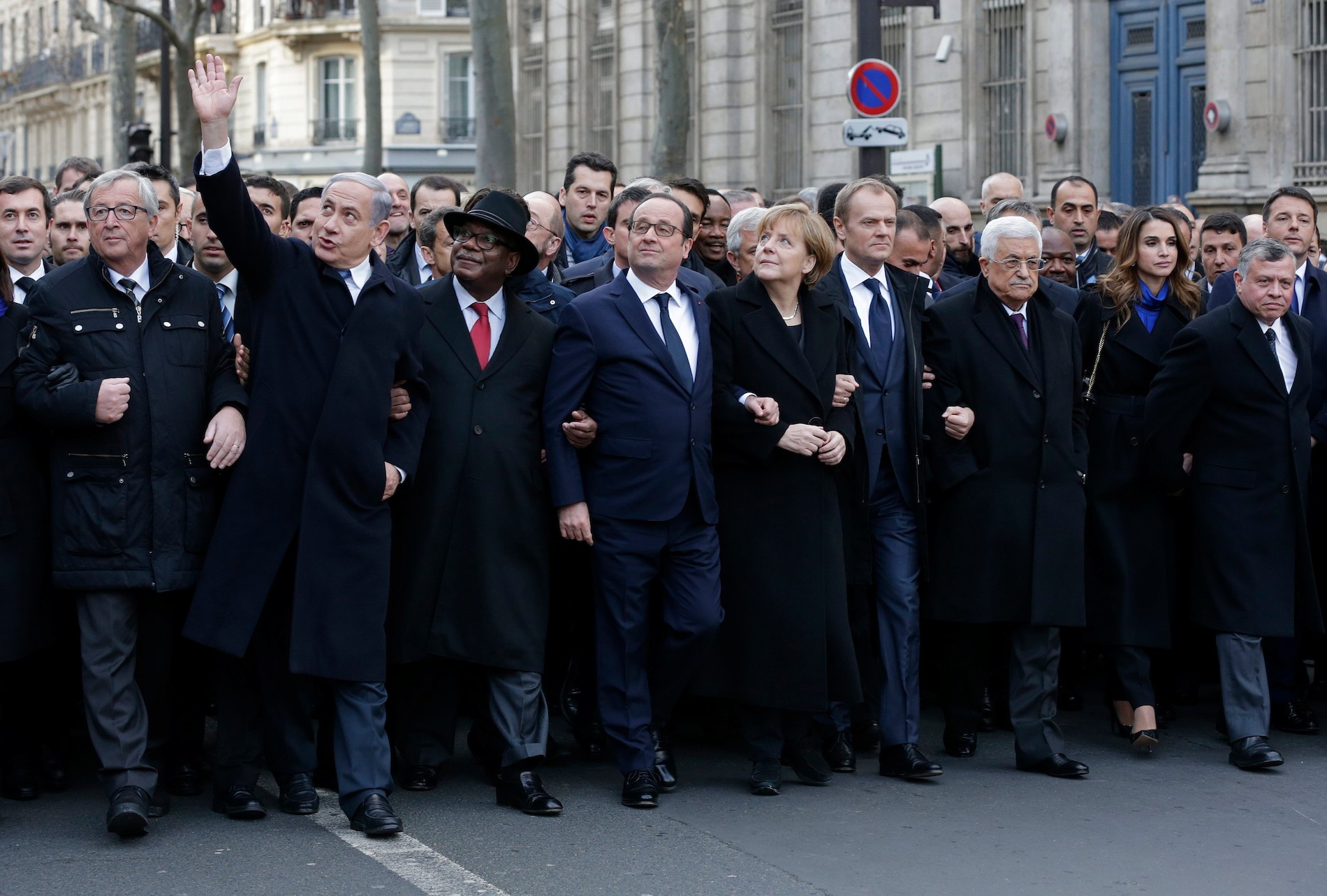 Numerosos jefes de Estado y de Gobierno decidieron acudir a París a la manifestación contra el terrorismo para dar su apoyo al pueblo francés tras los brutales atentados.