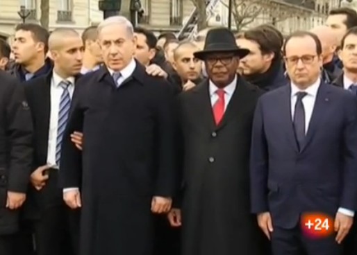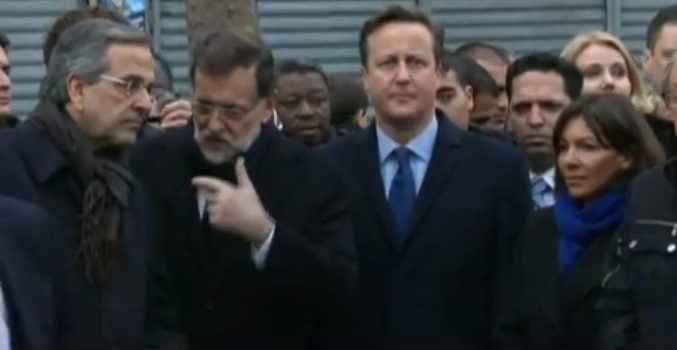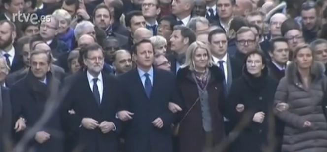 Algunos de los líderes mundiales que encabezaban la manifestación como Netanyahu, Sarkozy, Hollande, Merkel, Tusk, Abbas o Renzi, entre otros