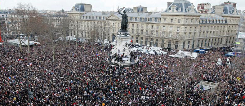 Alrededor de un millón de personas se han congregado en la Plaza de la República en París, para dar inicio a la marcha que condena los atentados de Al Qaeda y Estado Islámico, acontecidos en los últimos días en Francia y que se han saldado con un total de 20 muertos.