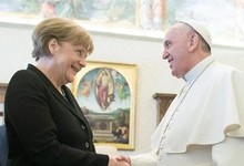 comentarios La canciller alemana y Francisco se reunieron durante 40 minutos en la Sala de Biblioteca del Vaticano.
