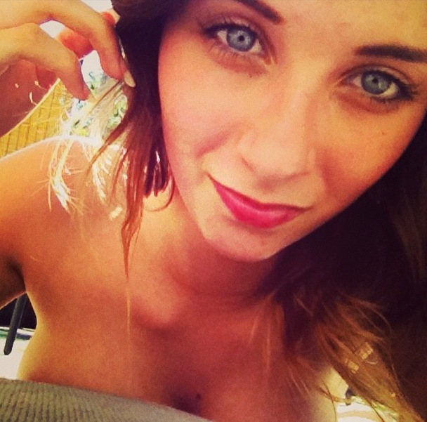 La joven posando junto a algunas amigas, que ella misma ha cortado en la foto, en la mansión Odd Fellows