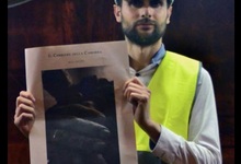 El artista Omar Jerez, que se paseó con un falso cadáver por San Sebastián, hoy ha retado a la Camorra napolitana.