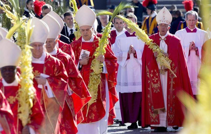 Miles de personas acudieron ante la Basílica de San Pedro, donde el pontífice fue testigo de la procesión de las palmas e impartió su bendición en el primer gran acto de la Semana Santa, el que conmemora la entrada de Jesús en Jerusalén.