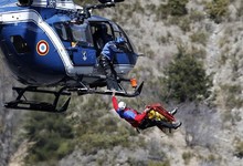 Un helicóptero de la Gendarmería con uno de los miembros del rescate. | EFE