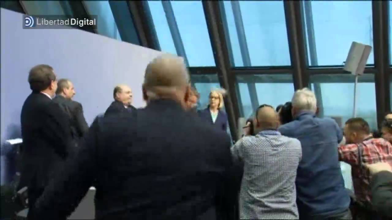 Una activista se lanza sobre Draghi al grito de "fin a la dictadura del BCE"