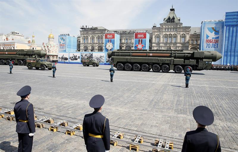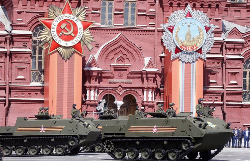 Miles de personas se concentraron este sábado en la plaza Roja de Moscú para celebrar el Día de la Victoria, en el que se conmemora la victoria soviética sobre los nazis. En el desfile militar -el mayor desde la disolución de la URSS- han participado más de 16.500 soldados, 200 vehículos y 140 helicópteros y aviones. Raúl Castro y Nicolás Maduro, invitados por Putin.