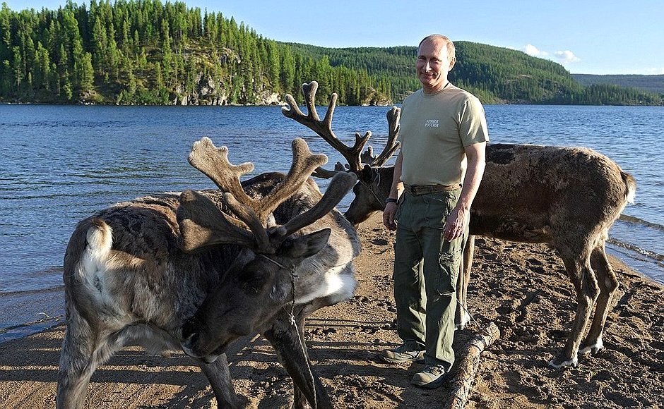 Con renos durante una visita al territorio de Krasnoyarsk en julio de 2013.