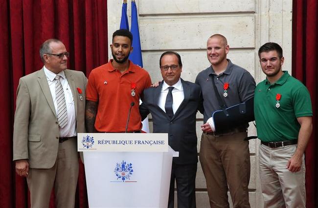Hollande ha rendido homenaje a la "valentía" de los tres ciudadanos estadounidenses y uno británico que con su acción en el Thalys Ámsterdam-París consiguieron evitar "una masacre, una carnicería".