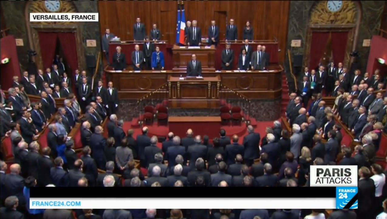 Todos los diputados y senadores entonan La Marsellesa al unísono en el Palacio de Versalles después de la intervención de François Hollande