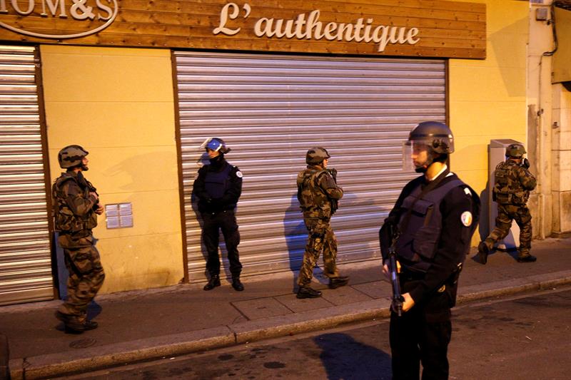 Soldados y policías participan en una operación en Saint Denis cerca de París (Francia) Las ventanas de las casas permanecen cerradas y apenas se ven habitantes por las calles de la ciudad.