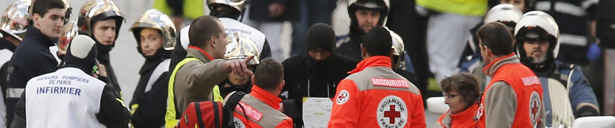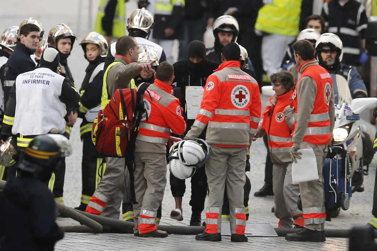 Los servicios sanitarios atienden a un policía herido durante el tiroteo
