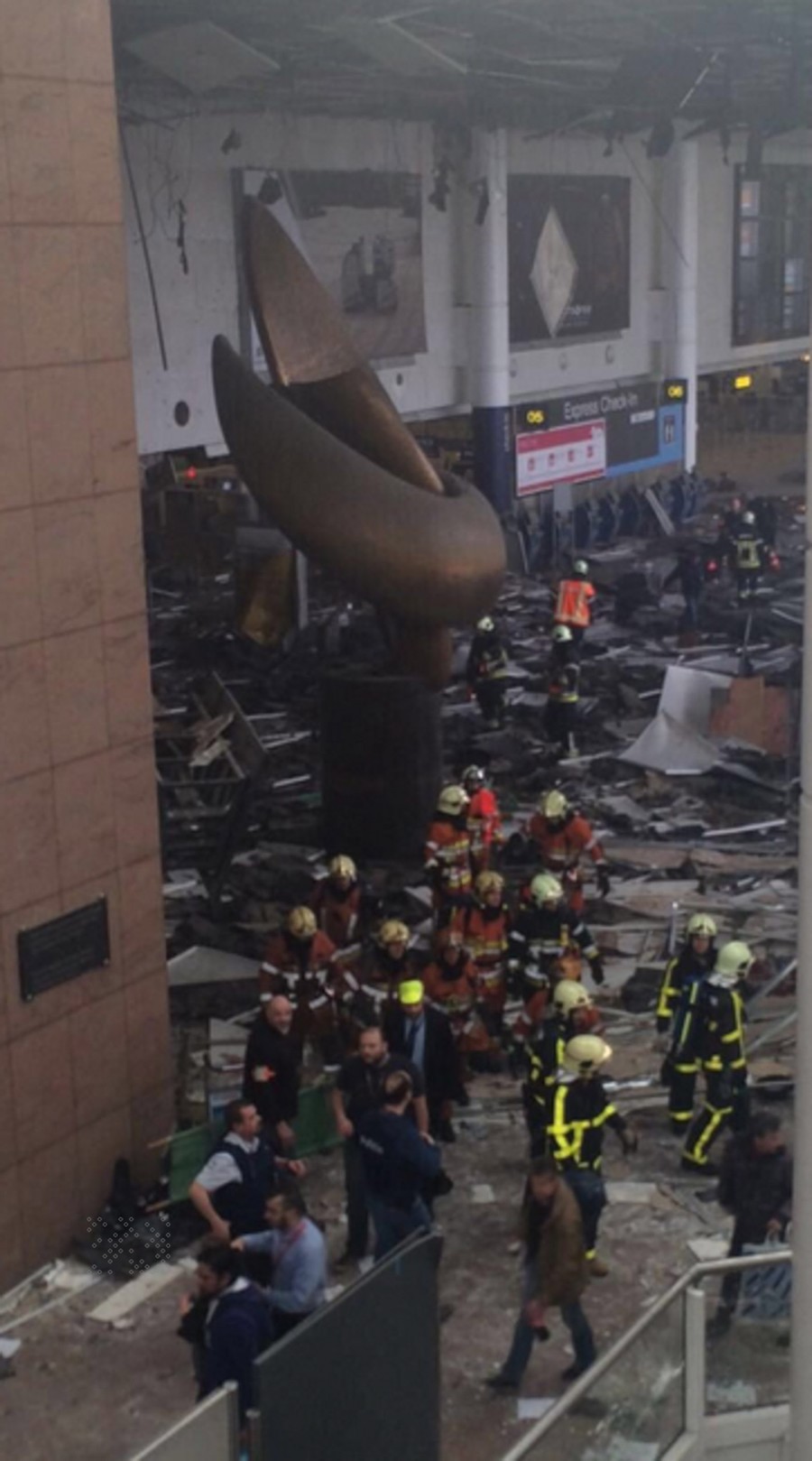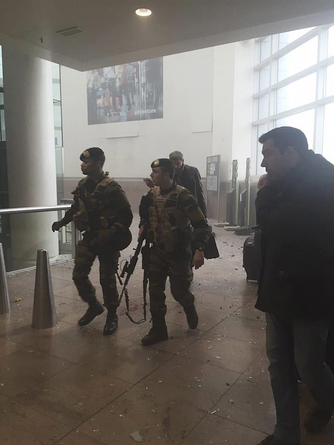 La policía belga evacua las el aeropuerto de Bruselas, donde se han producido dos explosiones.