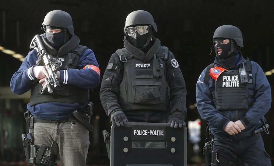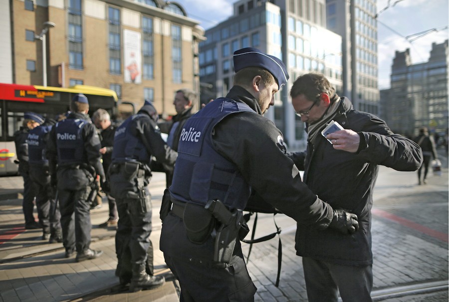 Los equipos de emergencia y las fuerzas de la policía han acordonado los alrededores de la estación de Maalbeek, en Bruselas.