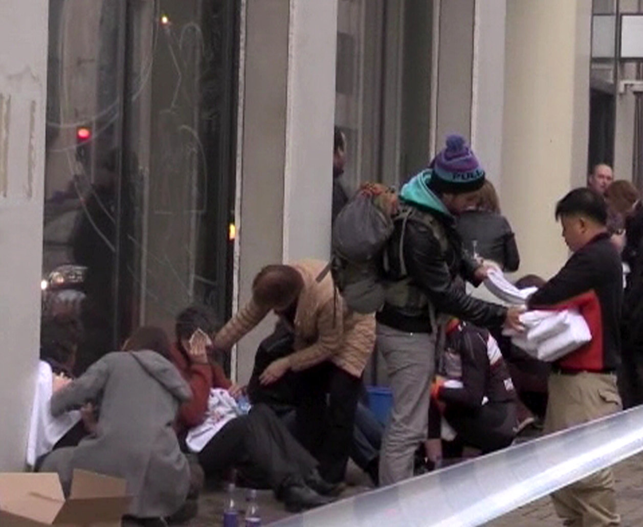 Varios heridos permanecen en la salida del metro de Maelbeek, después del atentado.