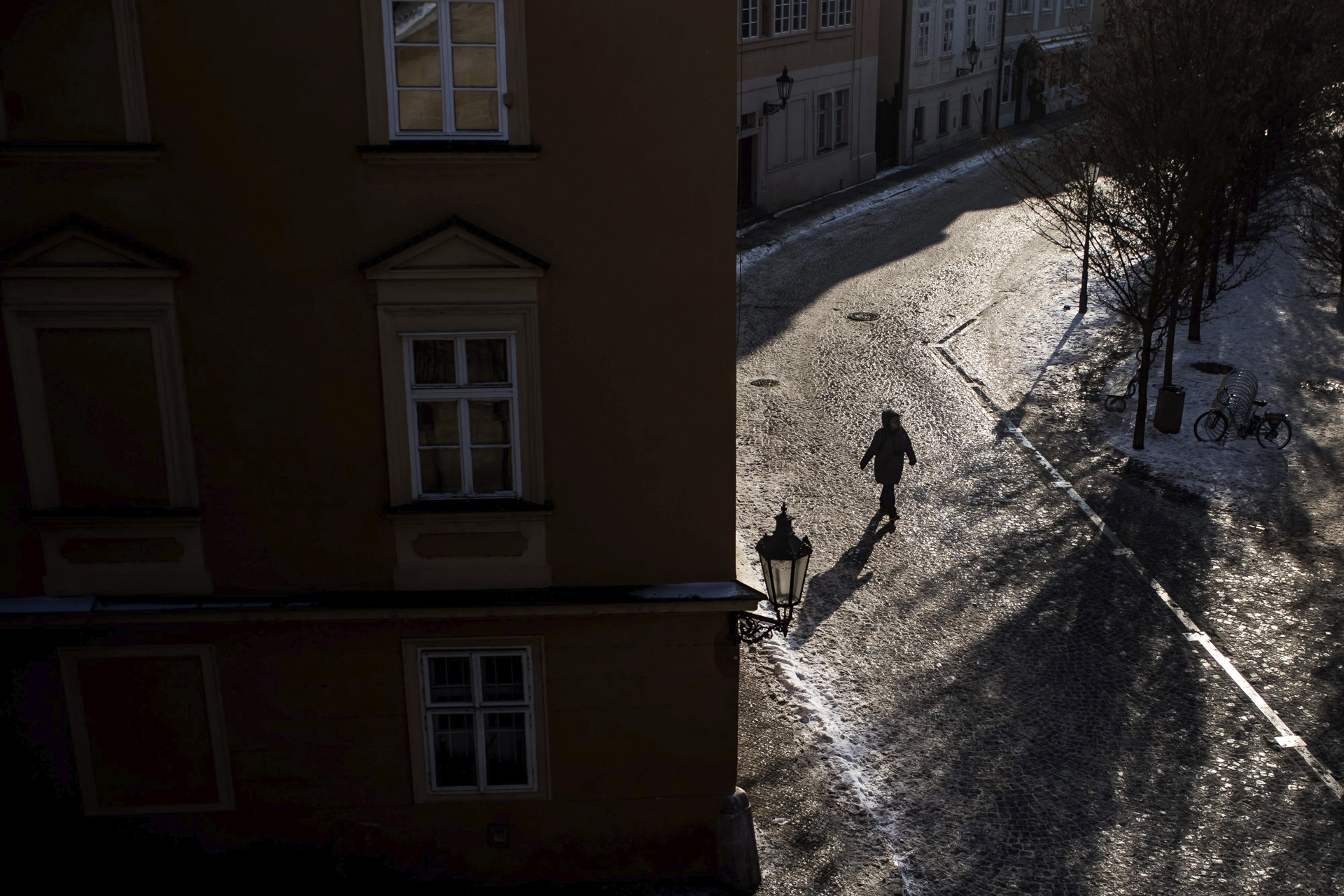 Una persona camina cerca del Puente Carlos en Praga, República Checa. Los servicios de socorro de la capital checa han tenido que atender numerosos casos de hipotermia, en la mayoría personas sintecho que habían ingerido alcohol, lo que disminuye la sensación de frío y, por tanto, aumenta el riesgo a morir congelado. Las mínimas han alcanzado récords: 34 bajo cero cerca de la frontera con Alemania.