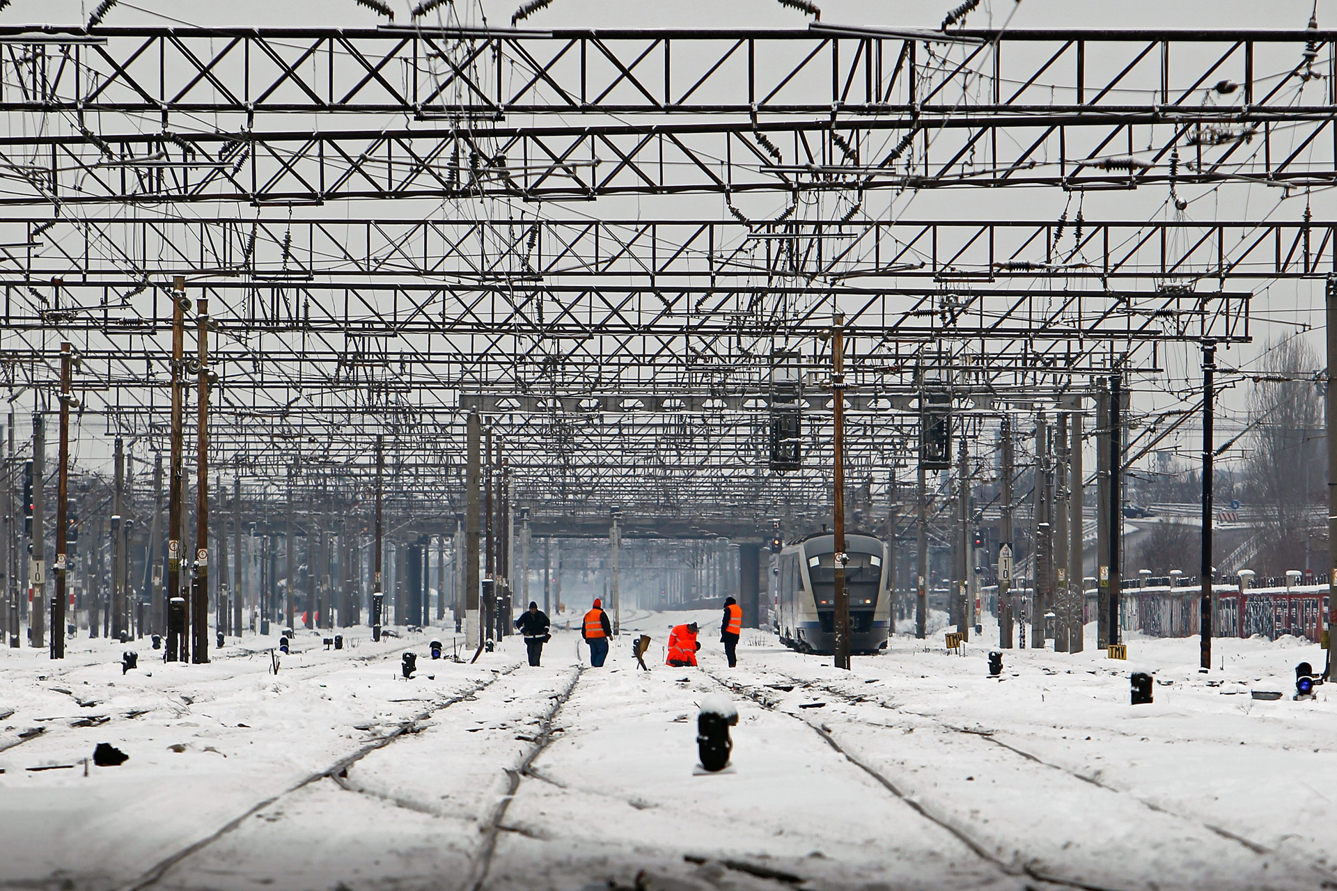 Varios operarios revisan las vías del tren en una de las estaciones de Bucarest, Rumanía, donde también han sufrido las consecuencias del temporal de frío y nieve. En algunas zonas de los Balcanes se han alcanzado los 29 grados bajo cero.