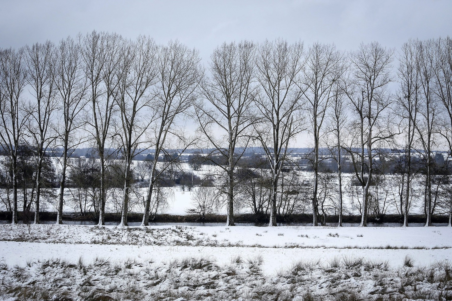 Vista de un paisaje cubierto de nieve cerca de Carignan, norte de Francia