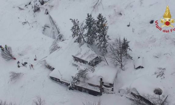Según los primeros testimonios de los equipos de rescate, el hotel está parcialmente derrumbado y completamente sepultado bajo la nieve y se ven algunas luces, pero no llegan voces de su interior.