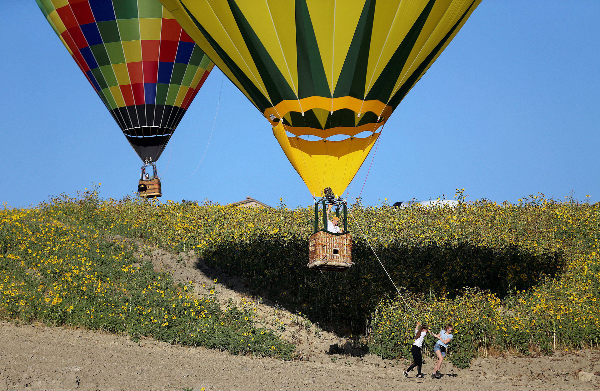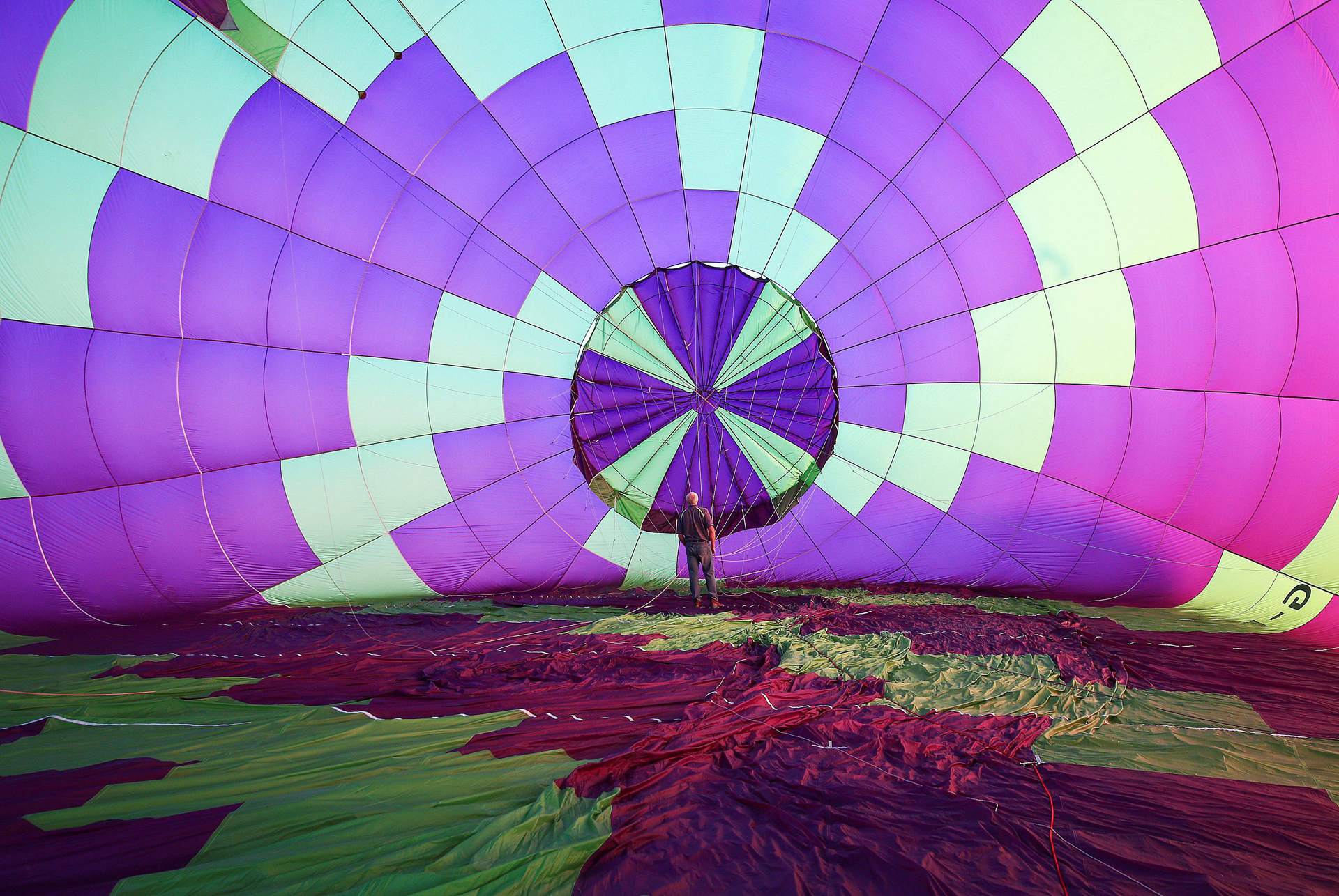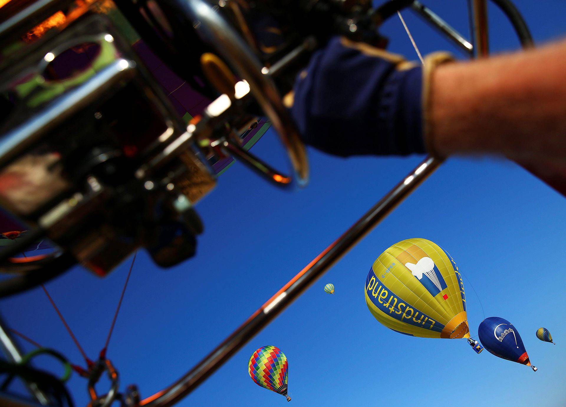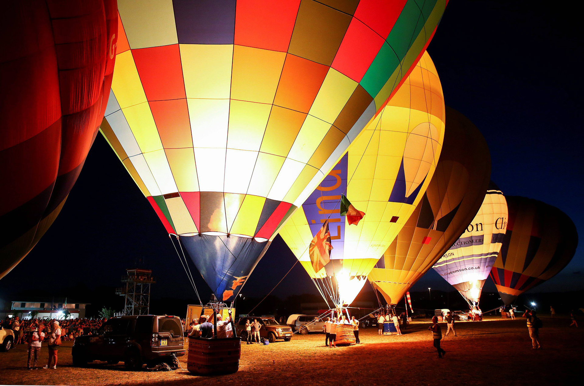 Los momentos previos al despegue de los globos, durante la puesta en marcha de los motores para calentar el aire.