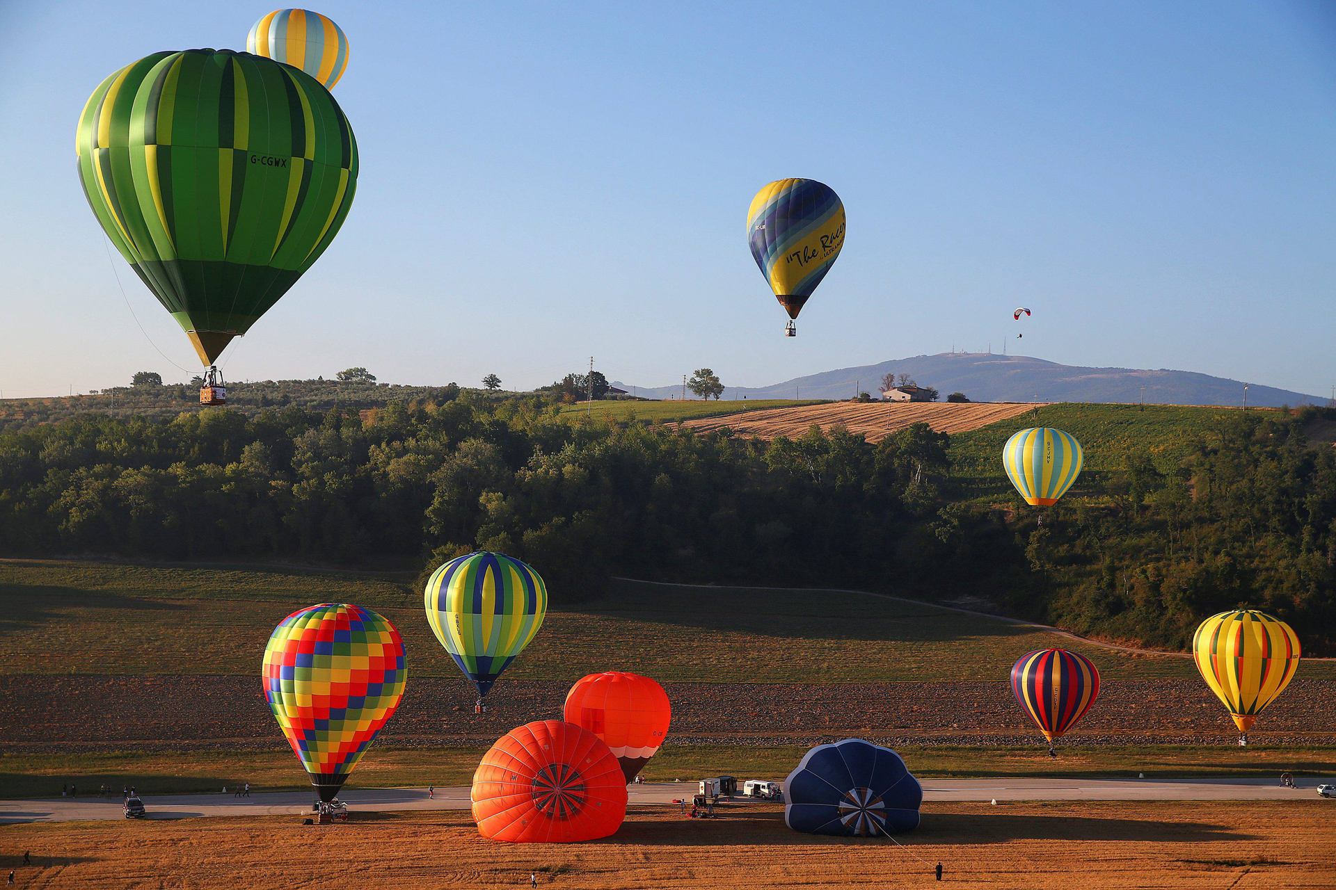 La zona de Terni cambió su espectacular paisaje natural durante un día por una vista colorida con decenas de globos aerostáticos.